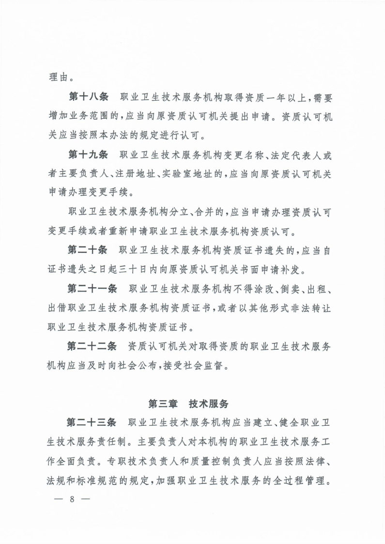 職業(yè)衛(wèi)生技術(shù)服務(wù)機(jī)構(gòu)管理辦法(國(guó)家衛(wèi)生健康委令第4號(hào))